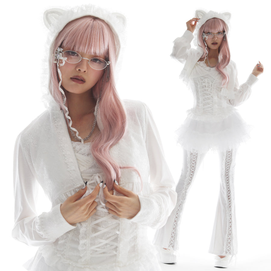 [予約1ヶ月]CAT EAR PRESENT RIBBON DRESS PARKA (WHITE x WHITE)