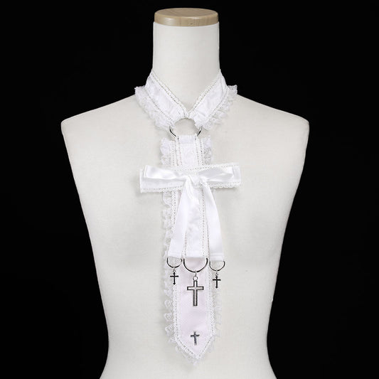 CROSS RIBBON CHOKER NECK-TIE (WHITE x PINK)