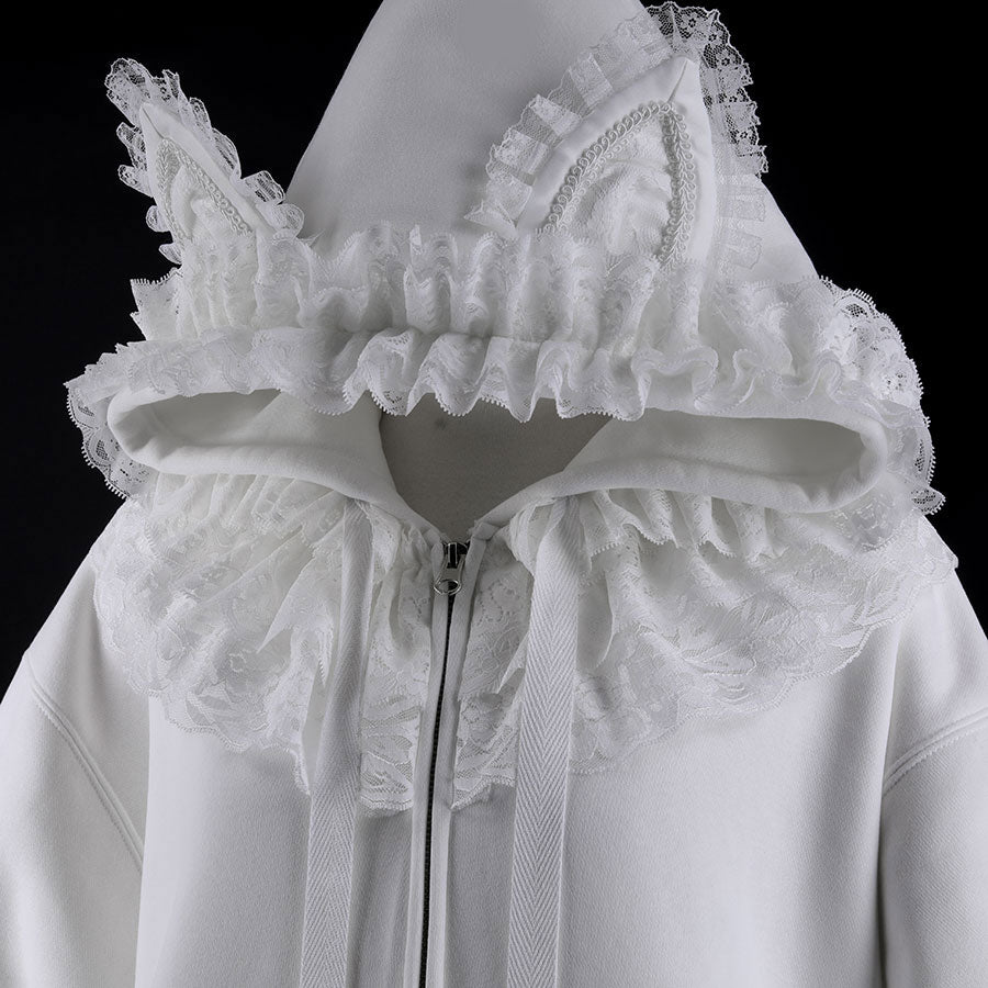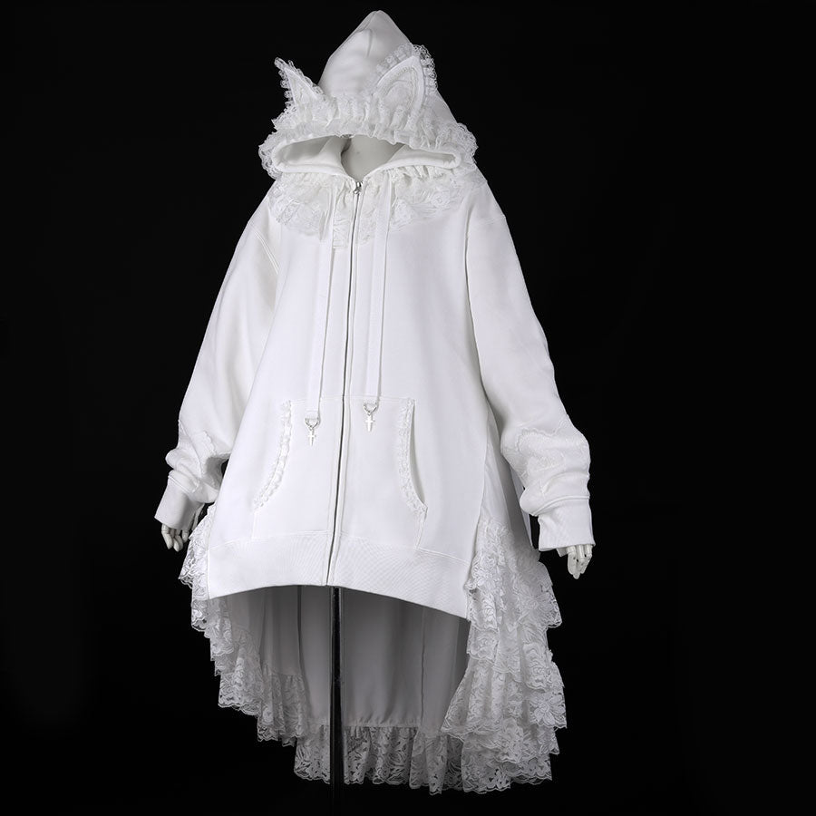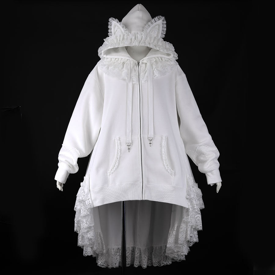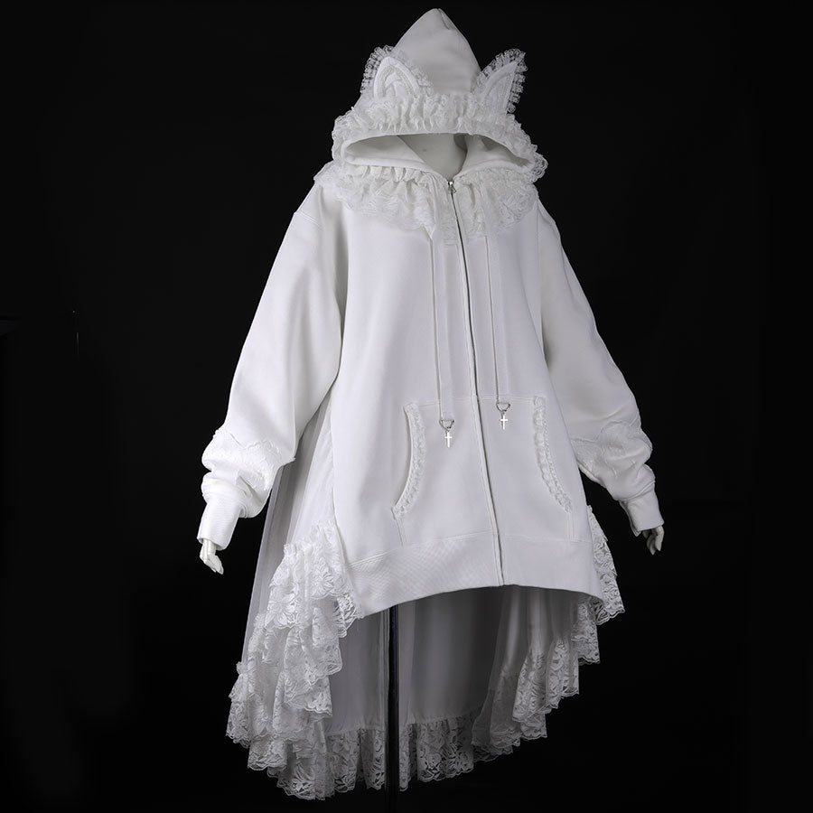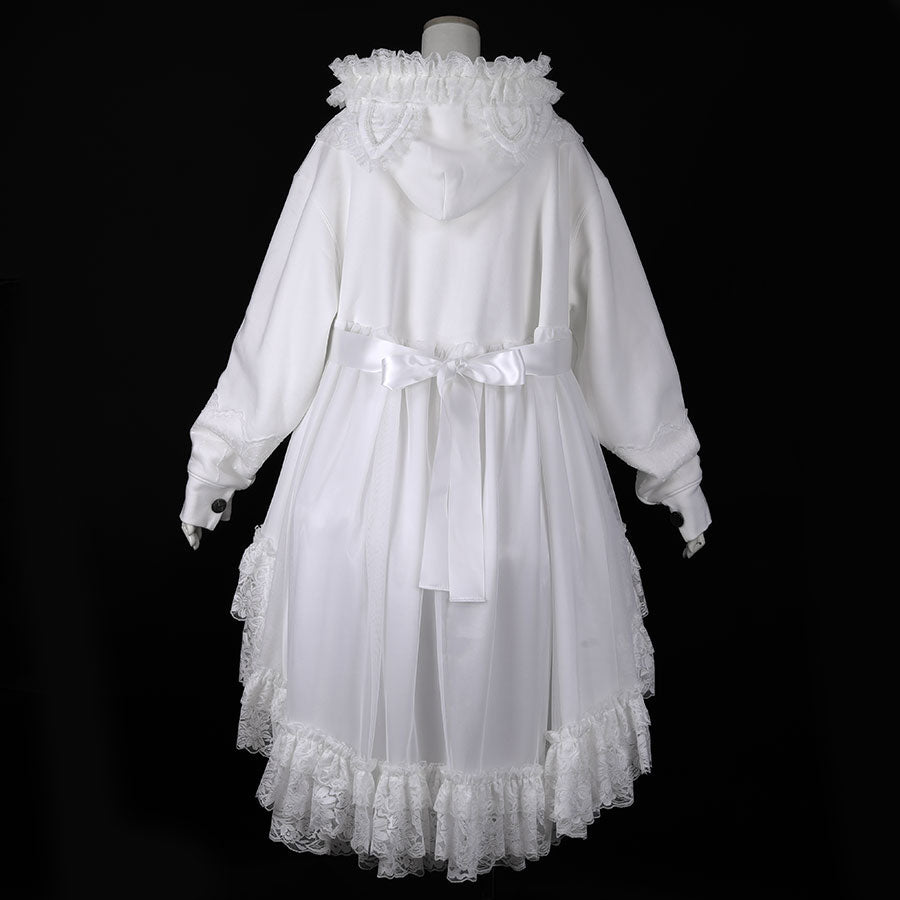 CAT EAR COAT STYLE FISH TAIL DRESS PARKA (WHITE)