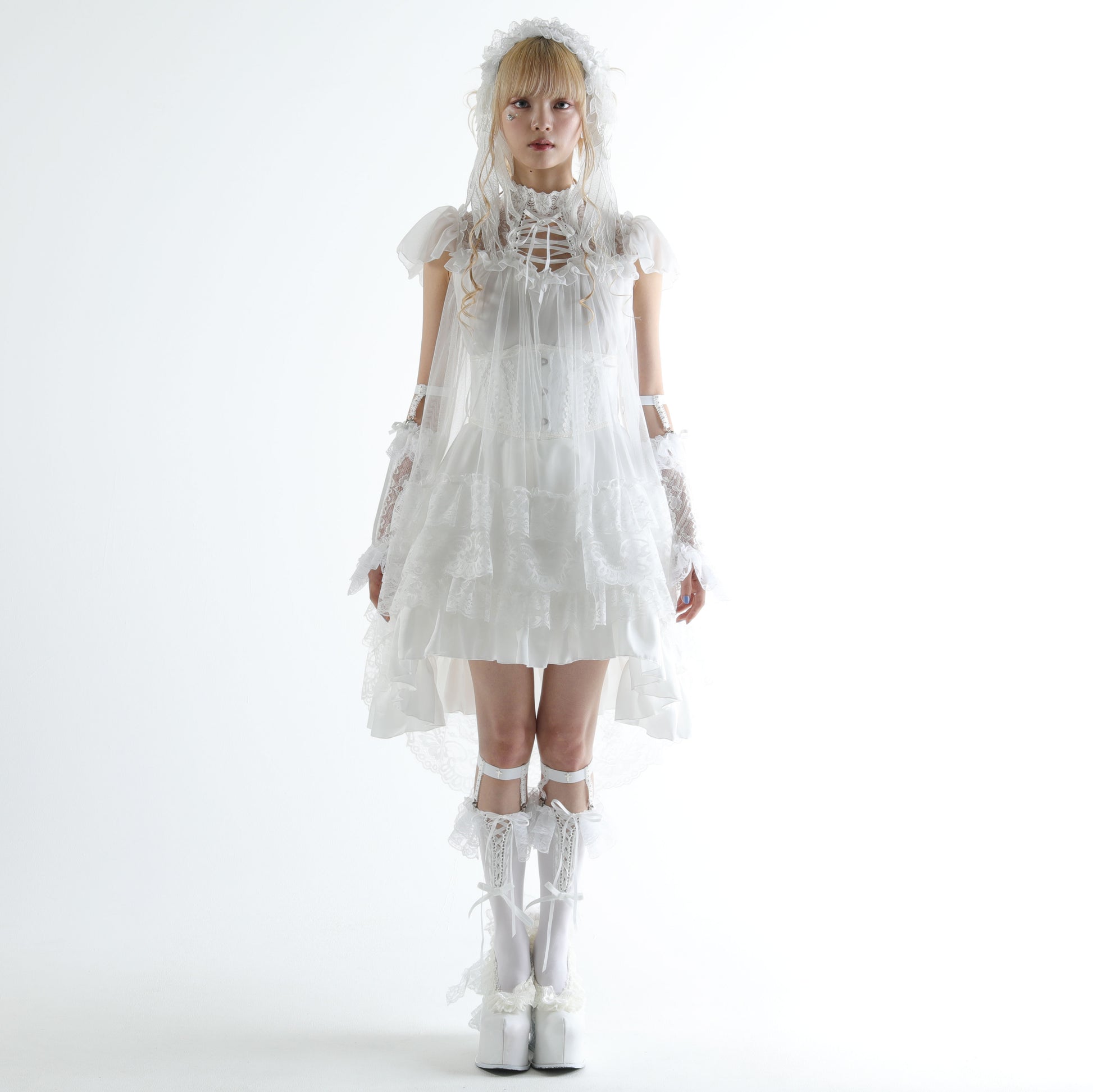 LACE COLLAR ANGEL WING DRESS (WHITE)