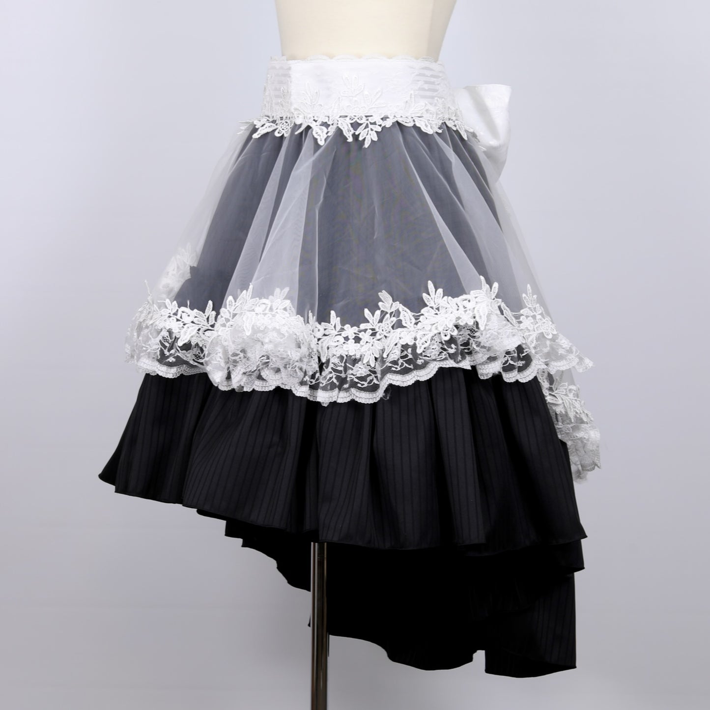 APRON SET STRIPE FISHTAIL SKIRT (BLACK x WHITE)
