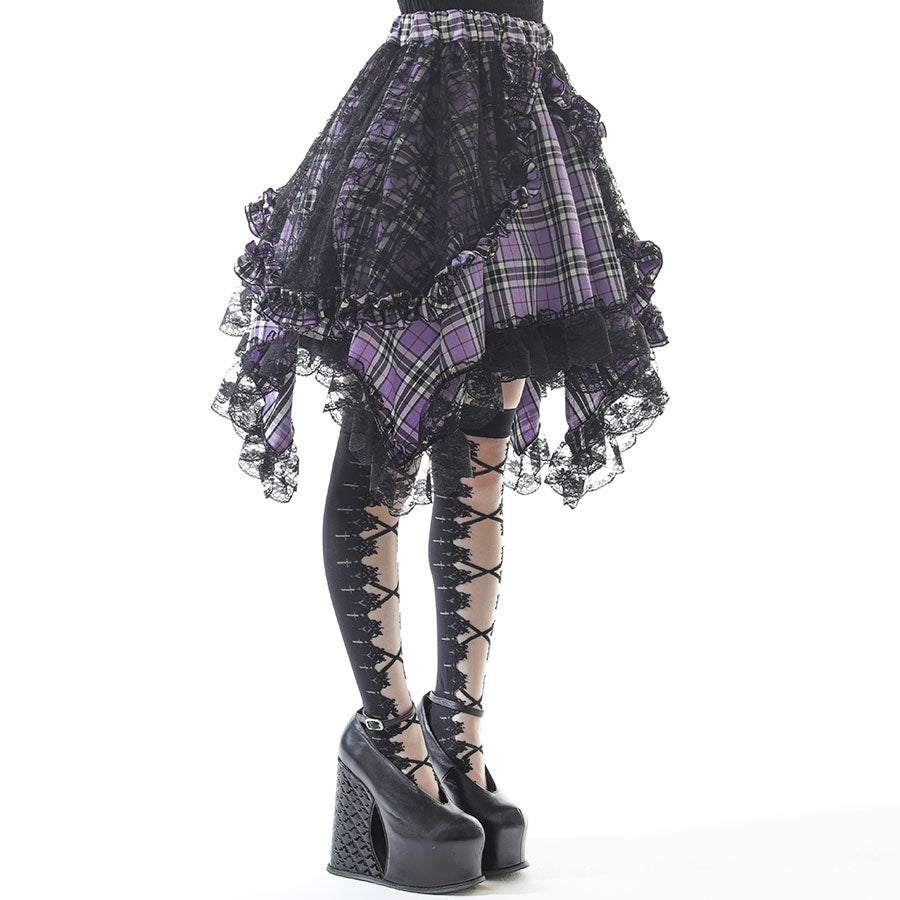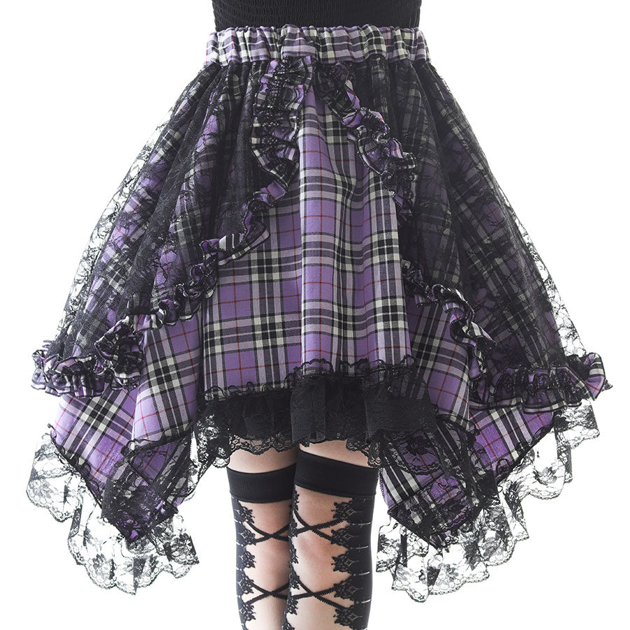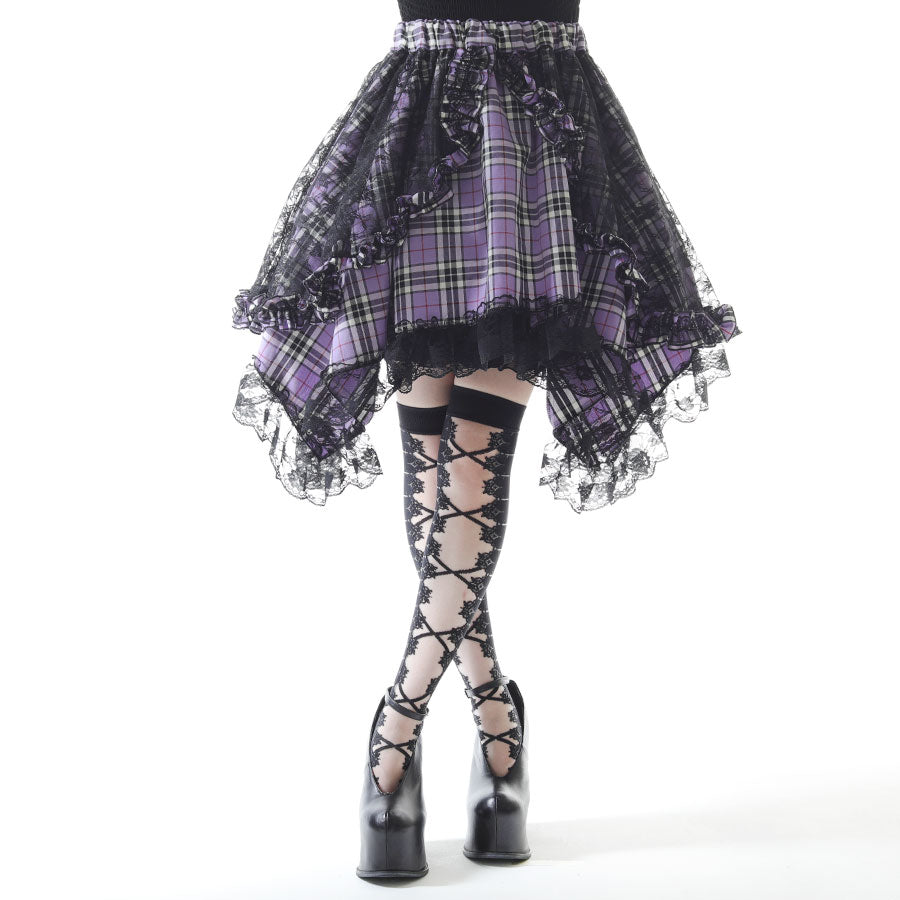 ANGRY DOUBLE RIBBON CAT TAIL MINI SKIRT (PURPLE x CHECK)