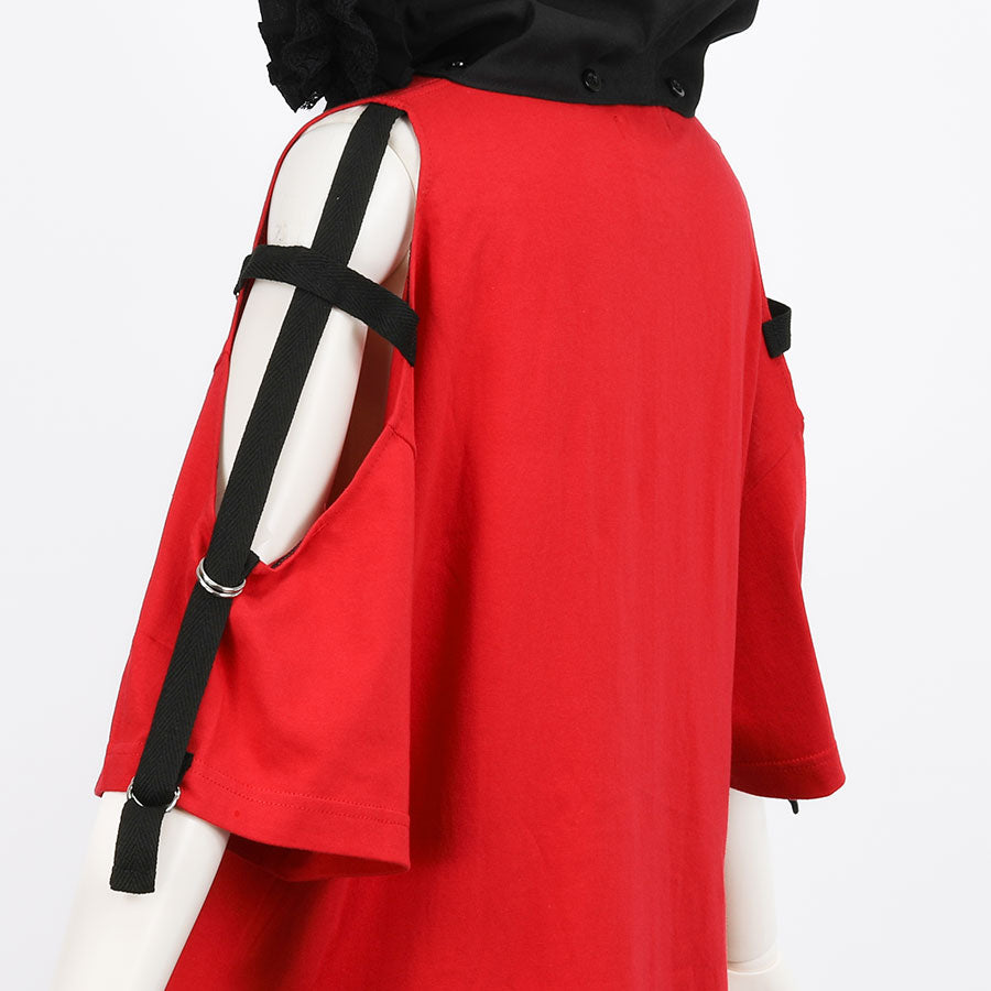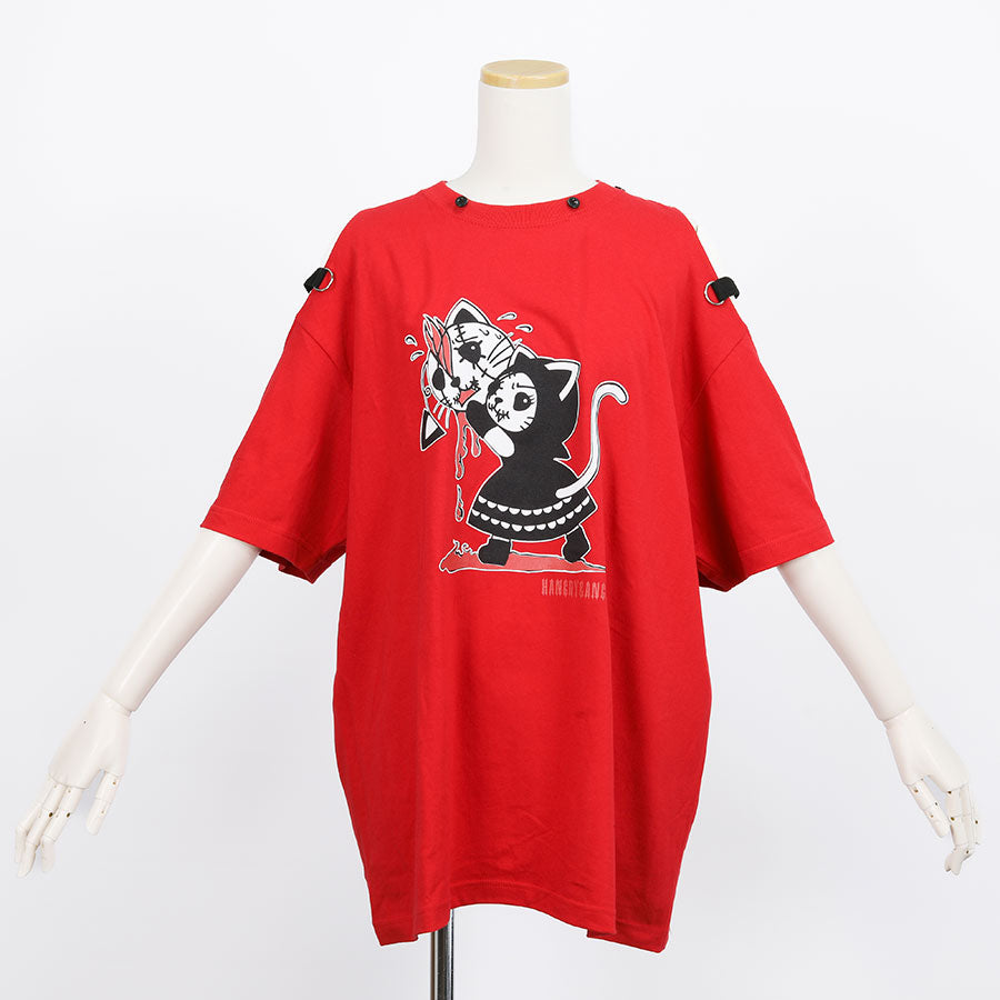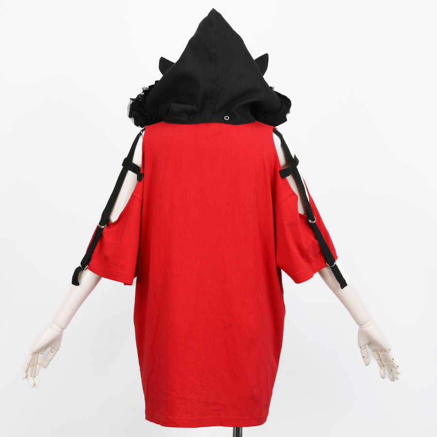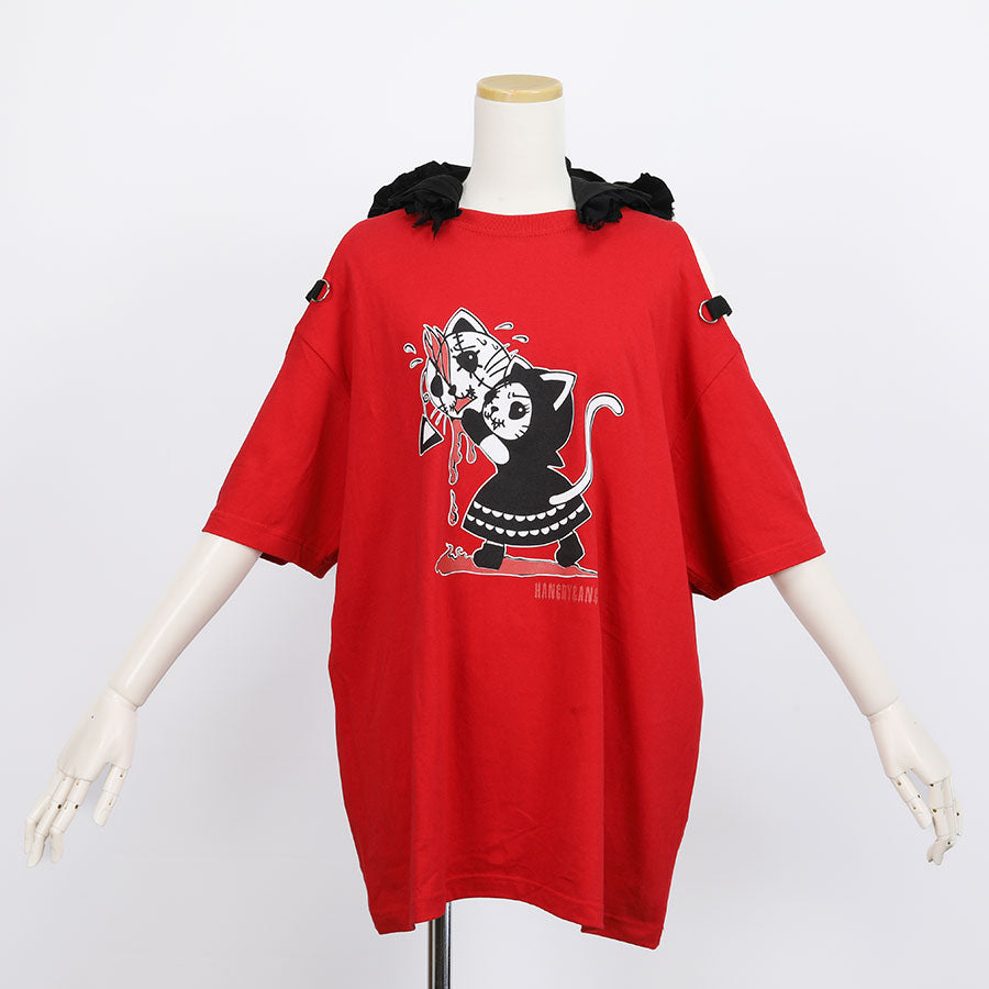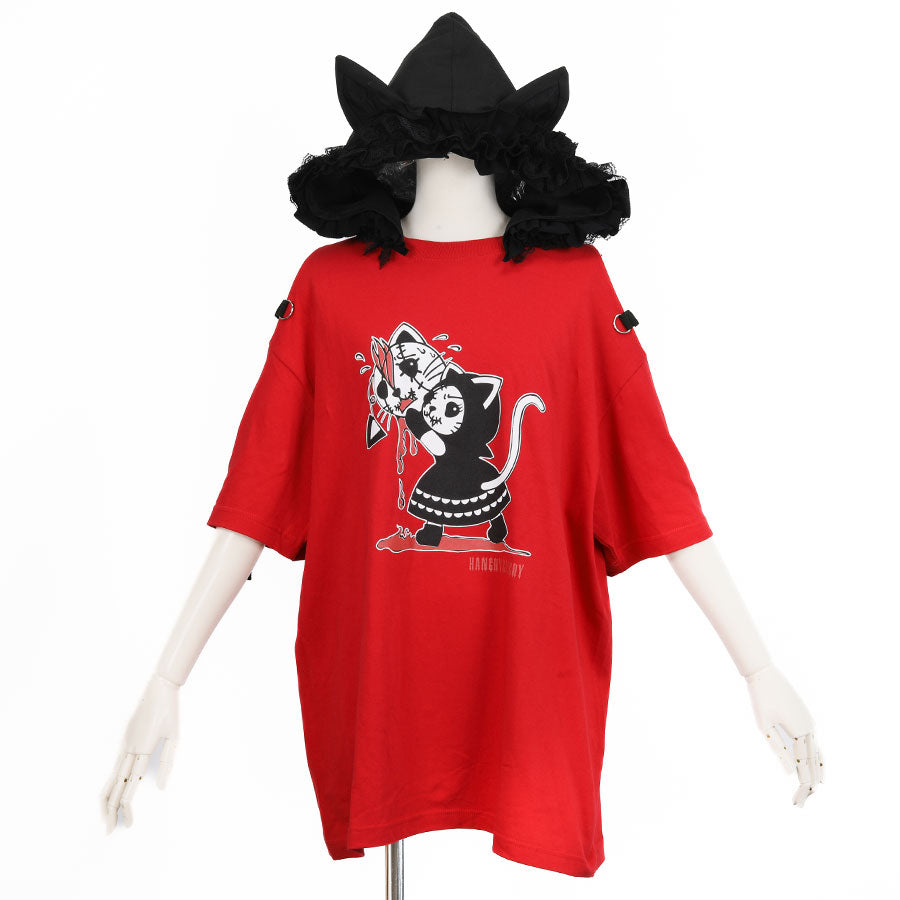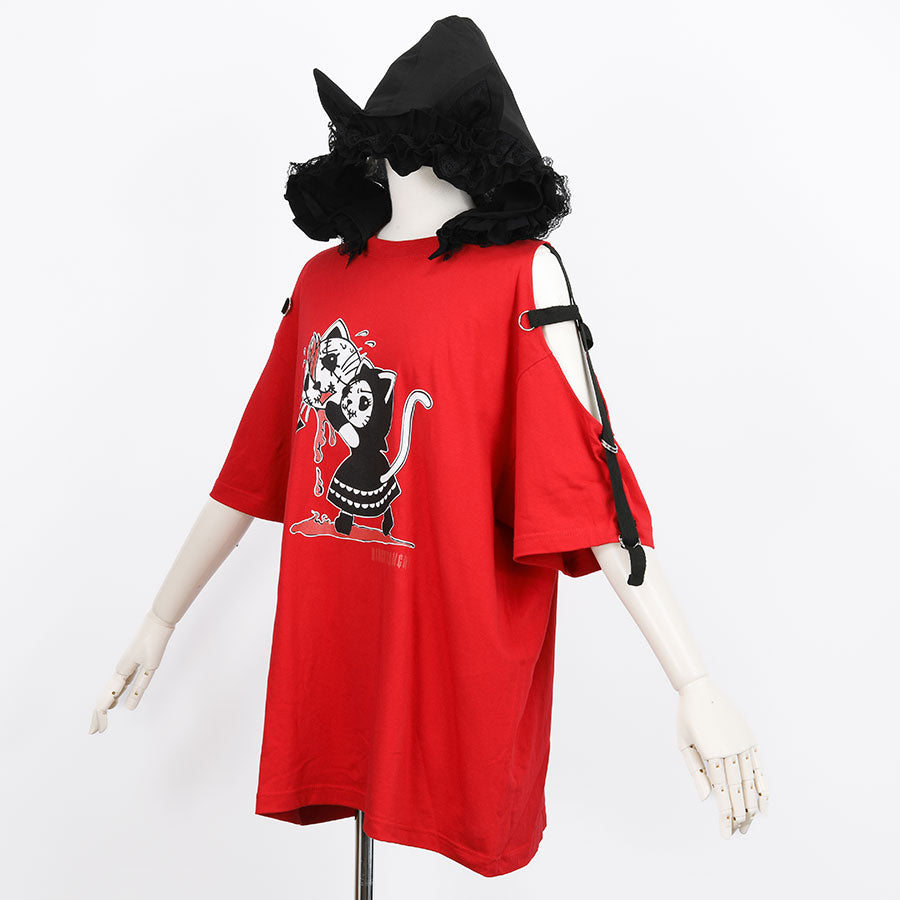 H&A CAT EARS HOOD SIDE CROSS T-SHIRT(RED)