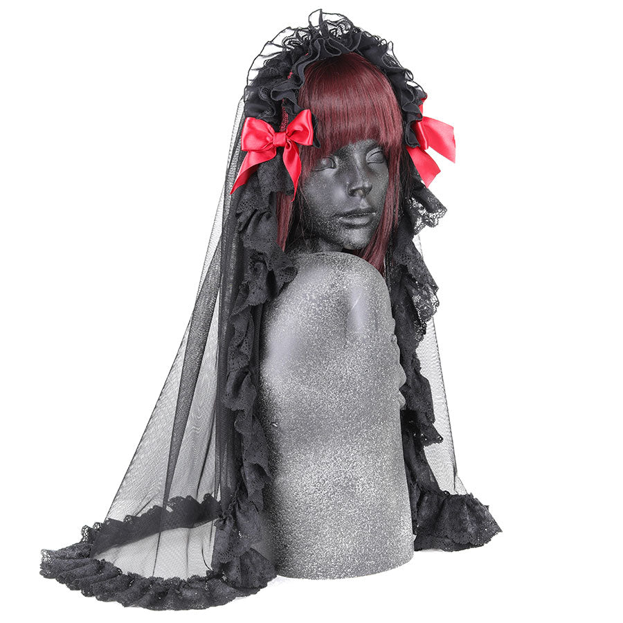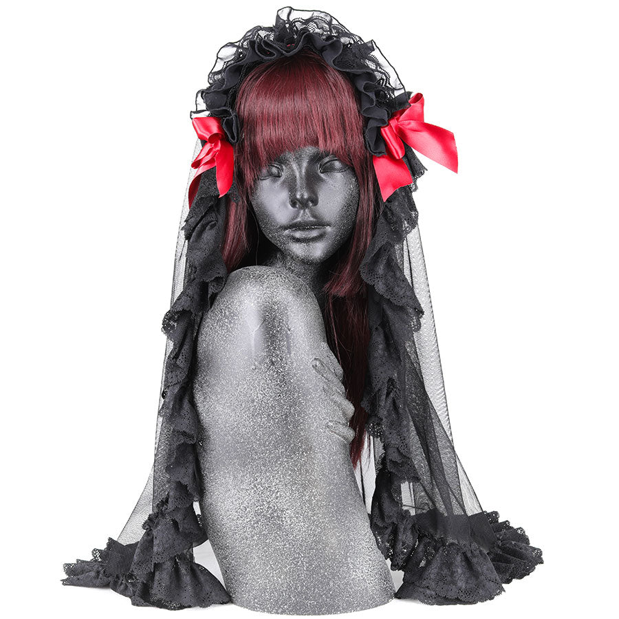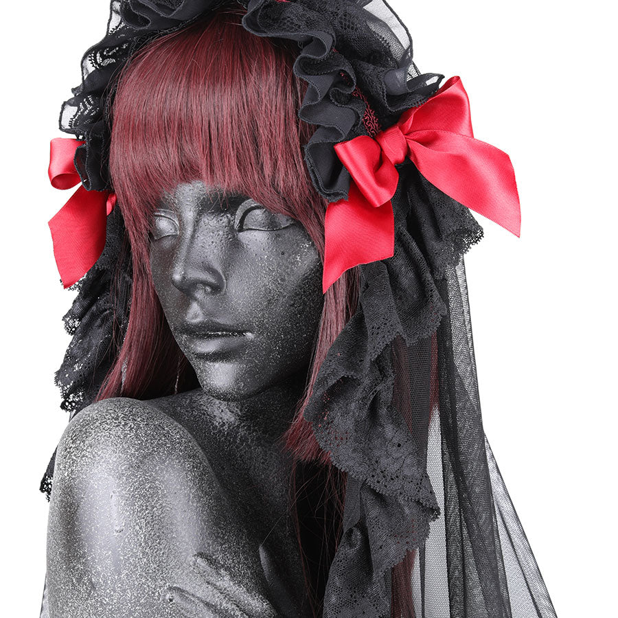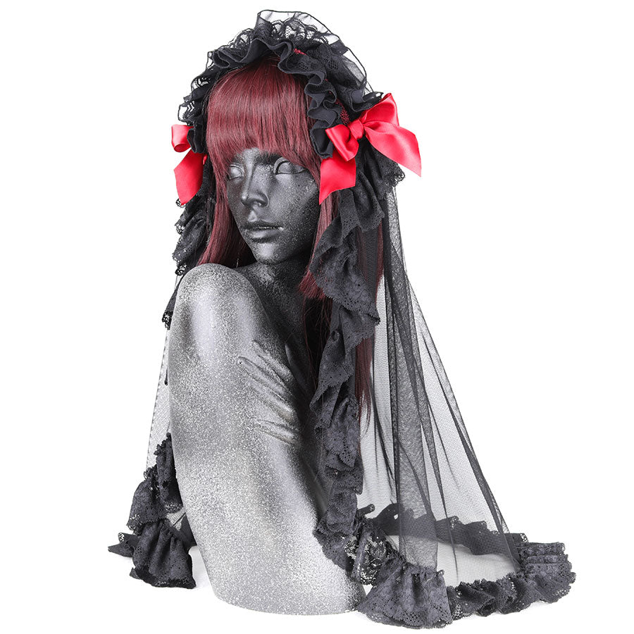 HOLY TULLE VEIL HEAD DRESS (BLACK x RED)