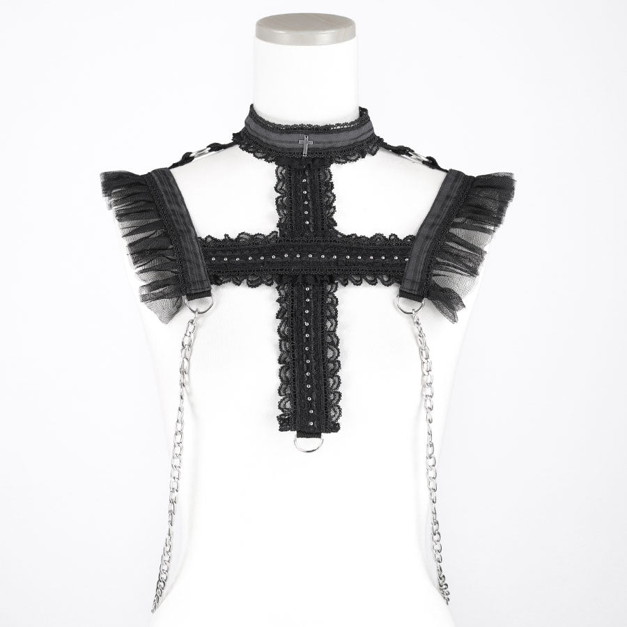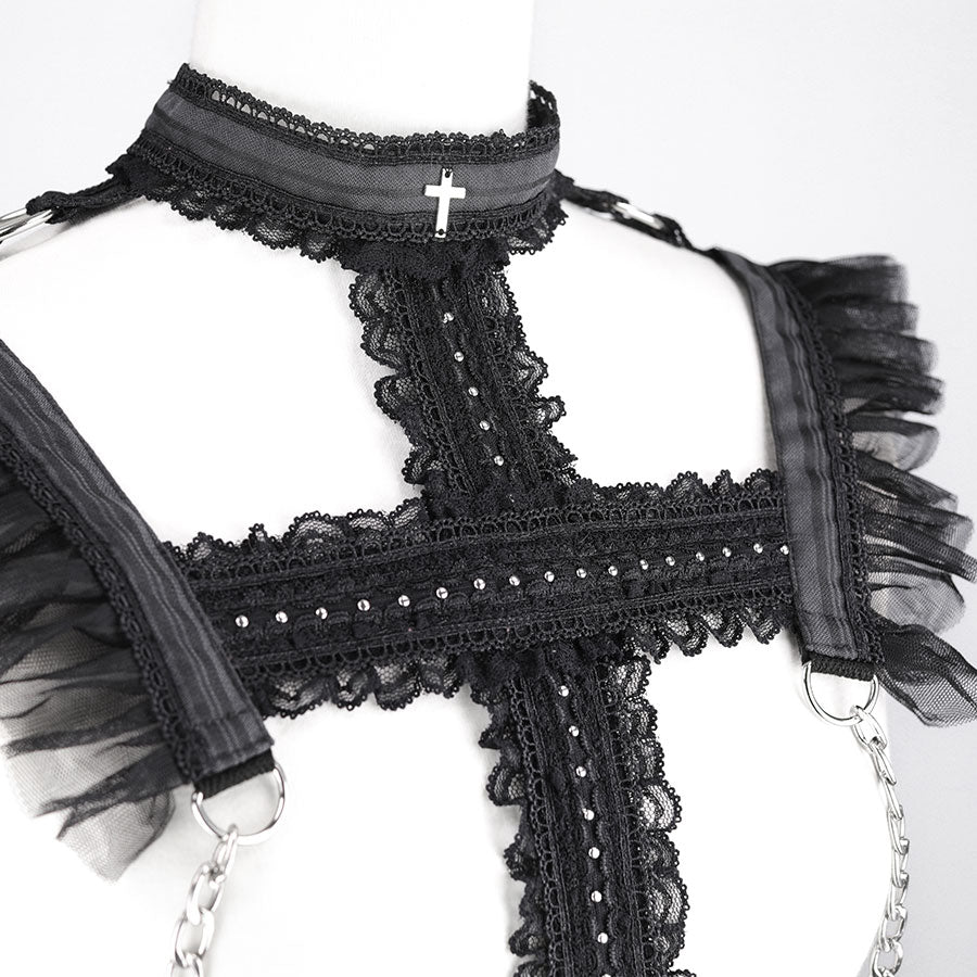 首元のクロスモチーフだけでなく、前面もクロスを描くようなデザインになっていて神秘的な印象を与えてくれます。