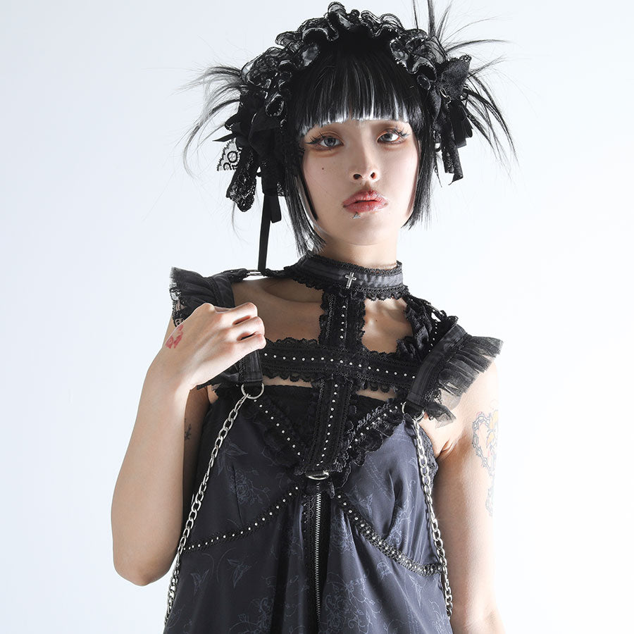シンプルながらも甘辛MIXなデザインとなっており、ゴシックスタイルやパンクスタイルだけでなくロリィタにも合わせやすいアイテム。