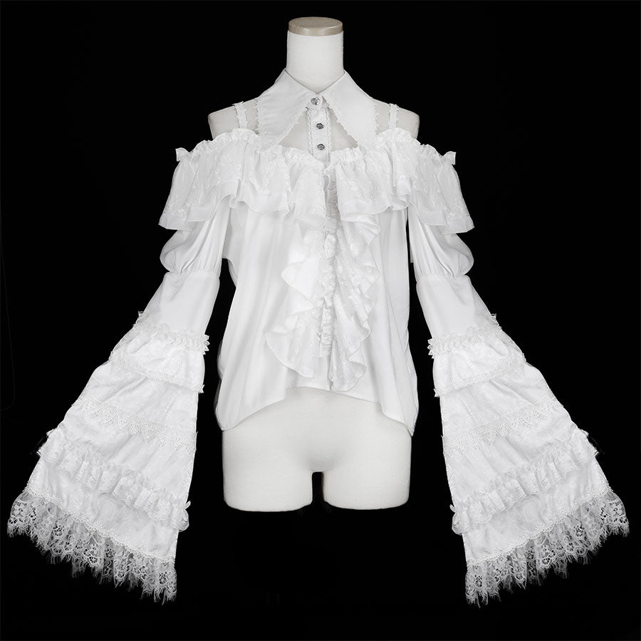 [予約 3月末-4月初入荷]COLLAR PRINCESS SLEEVE OFF SHOULDER BLOUSE (WHITE)