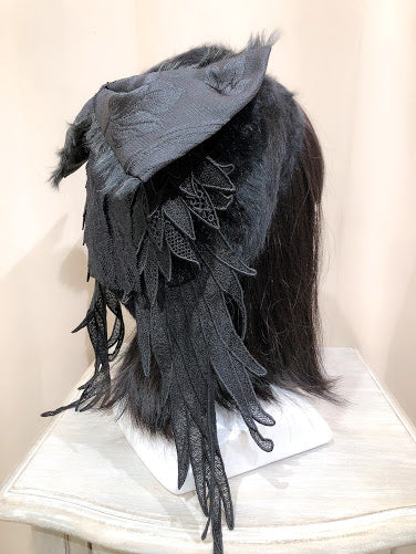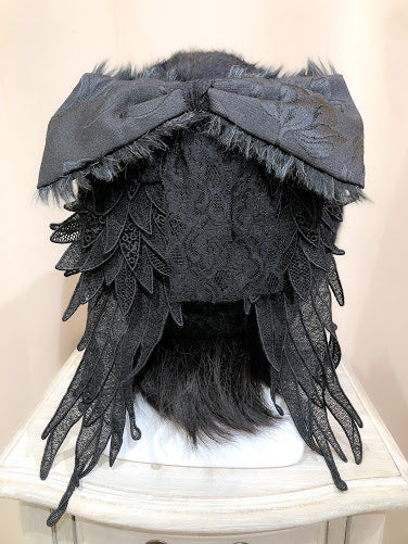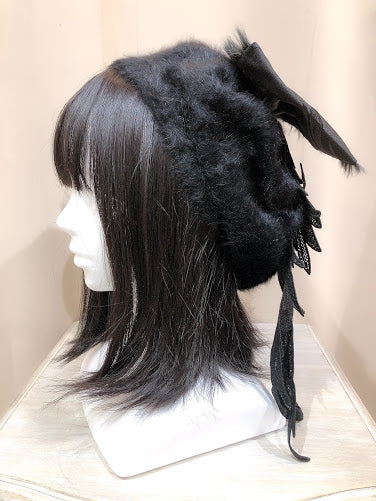 大きなリボンとエンジェルウイングが可愛いシャギー素材のベレー帽。