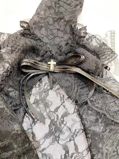 ホワイト×ゴールドのリボンと、ちょこんと付いたクロスがポイントのアイテム。