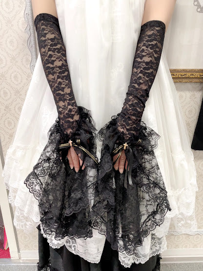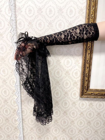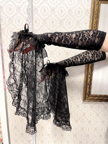 レースが大きく垂れ下がった、エレガントな姫袖アームカバー。