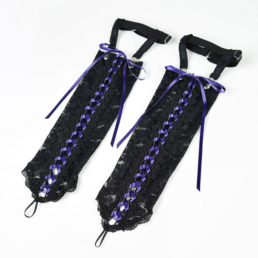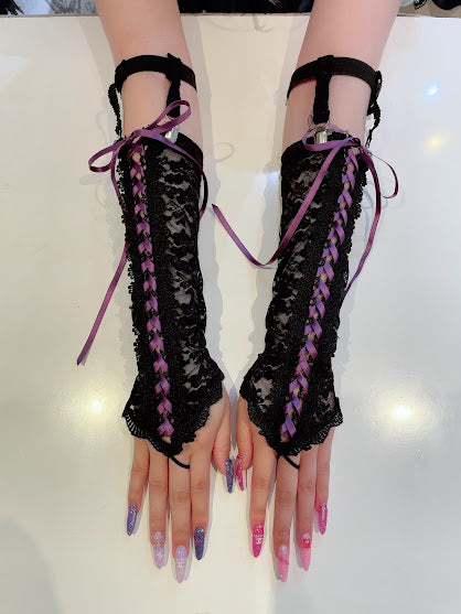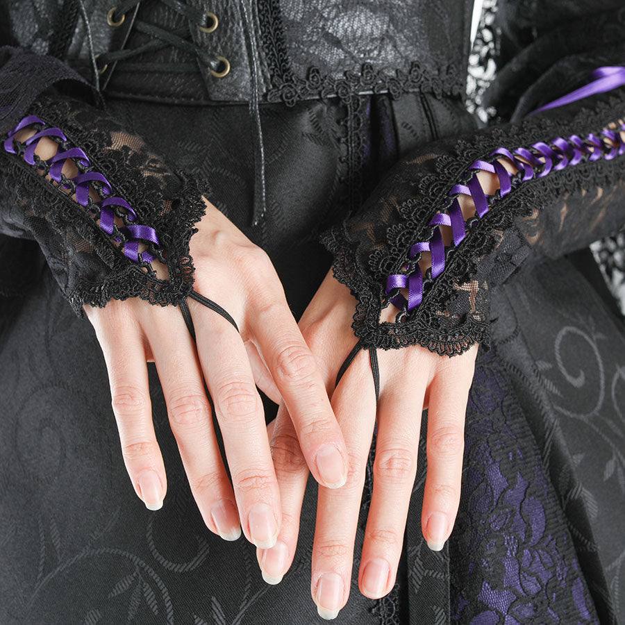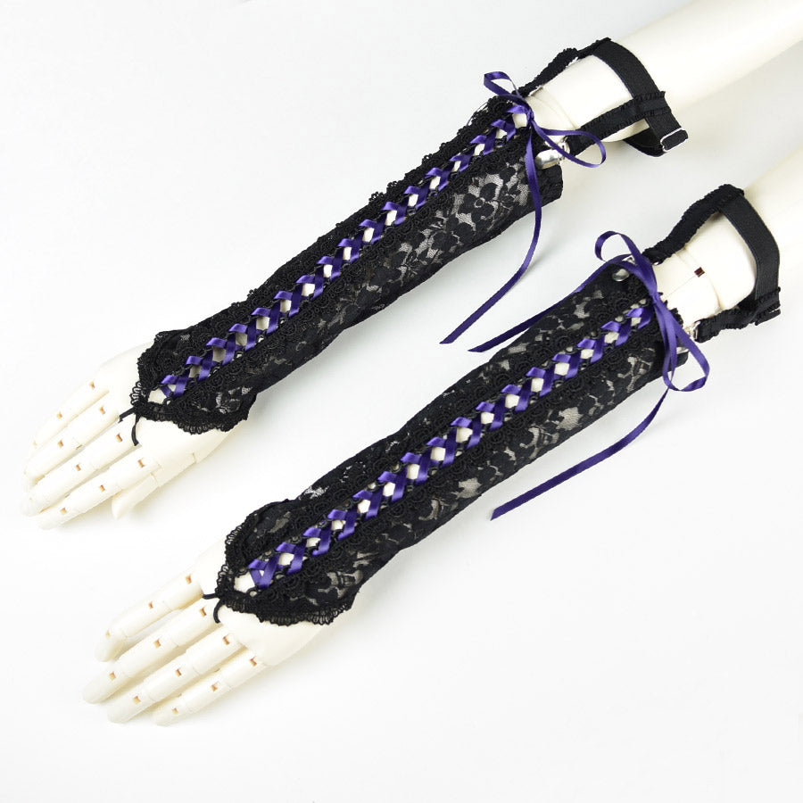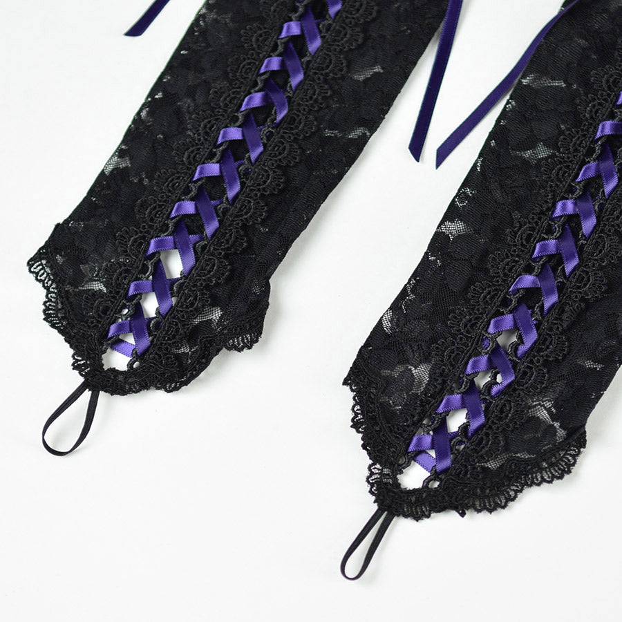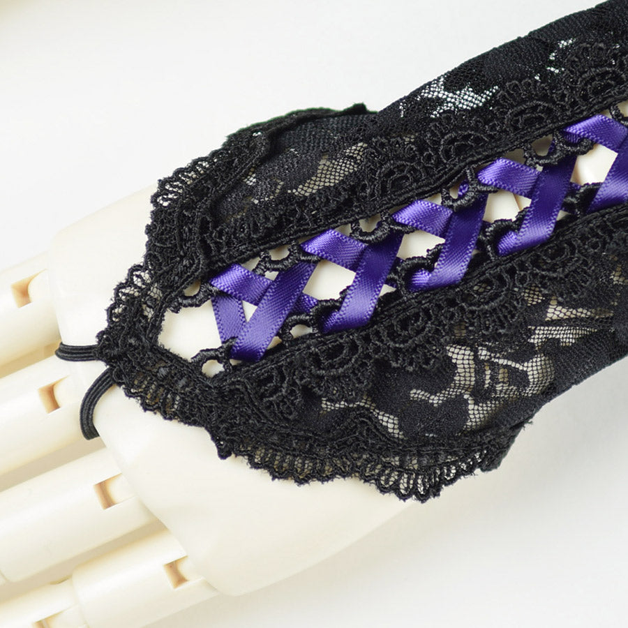 LACE-UP BONDAGE FINGERLESS GLOVES (BLACK X PURPLE)