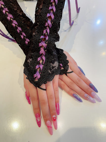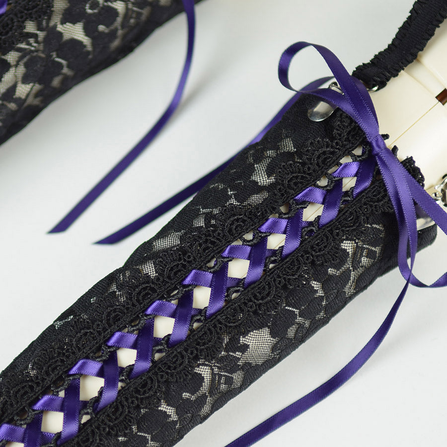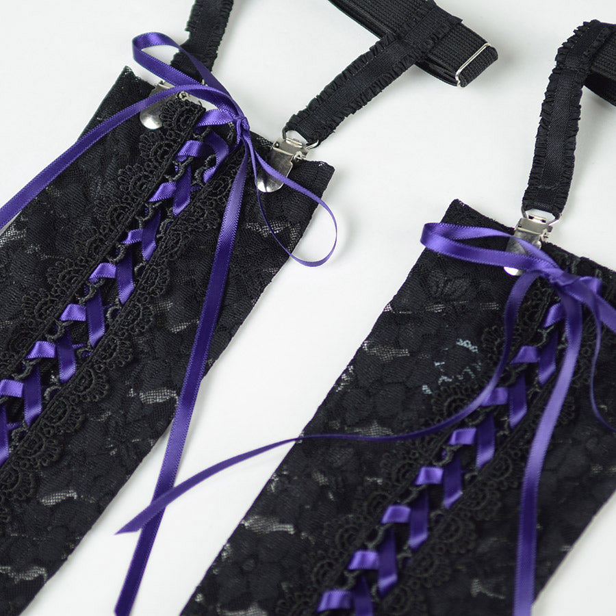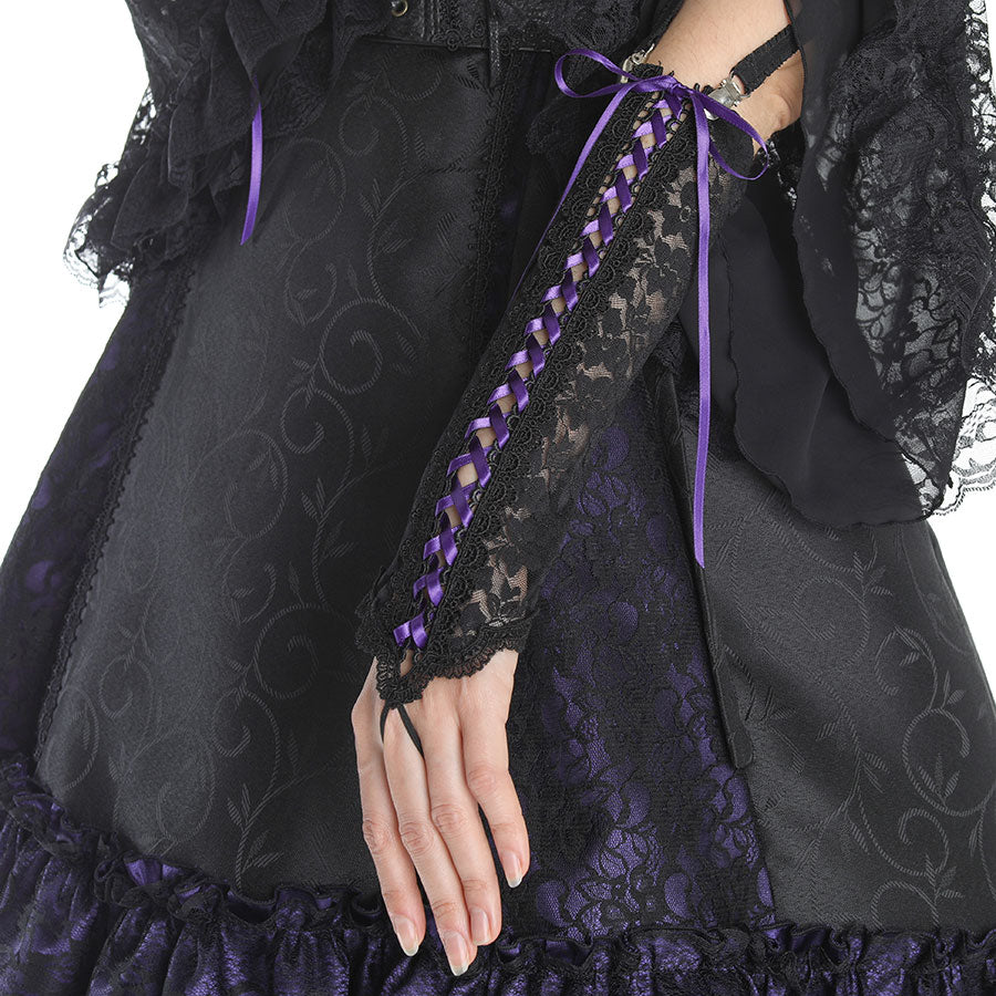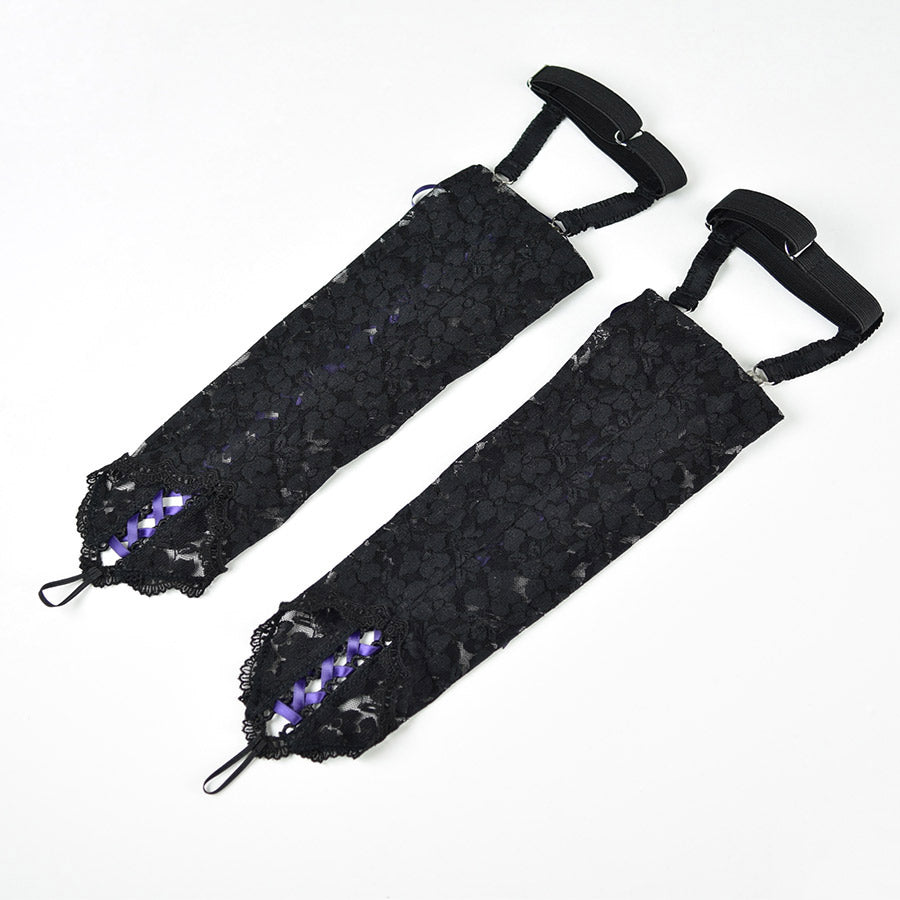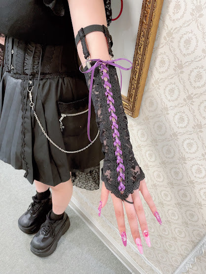 LACE-UP BONDAGE FINGERLESS GLOVES (BLACK X PURPLE)