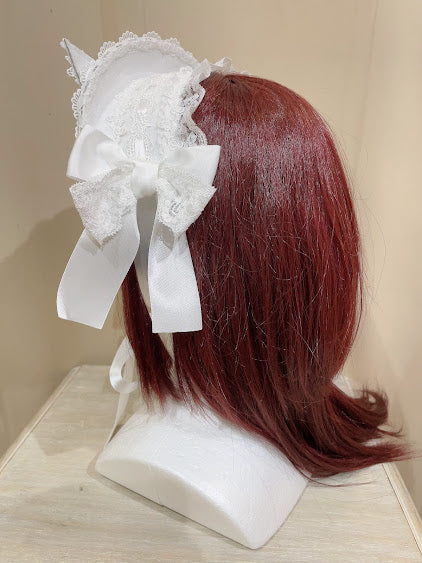 LADDER LACE CAT EARS MINI BONNET (WHITE)