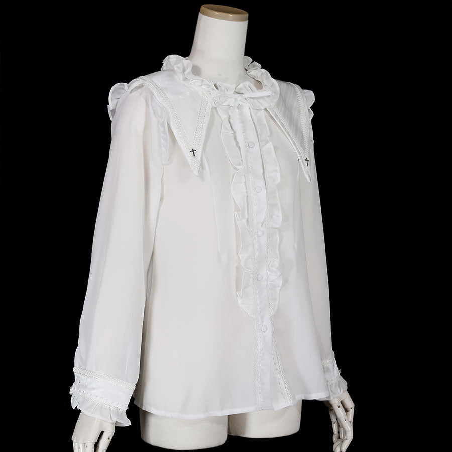 CROSS CHARM SAILOR COLLAR BLOUSE(WHITE)