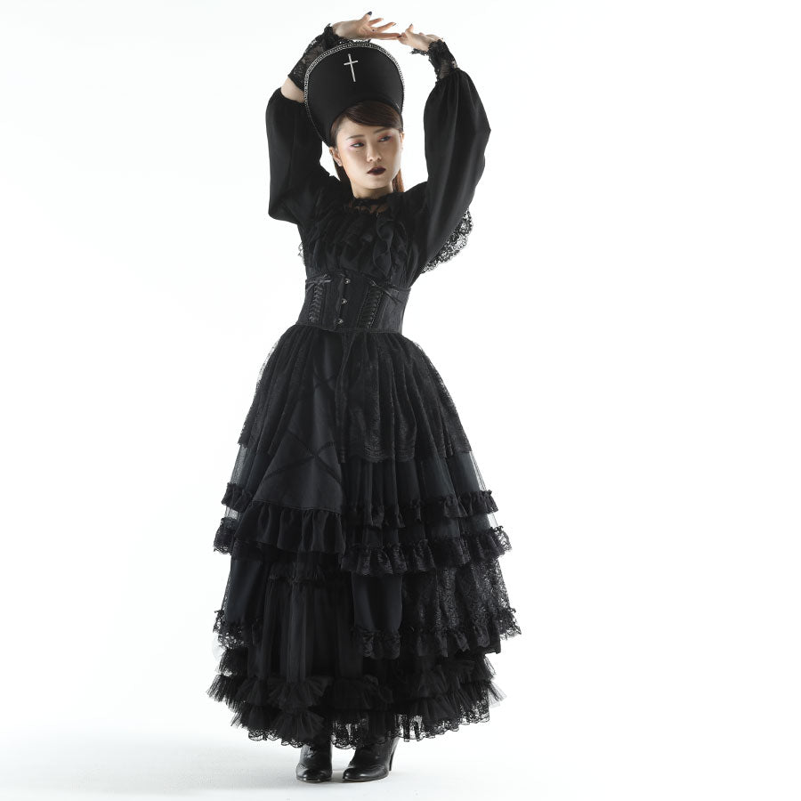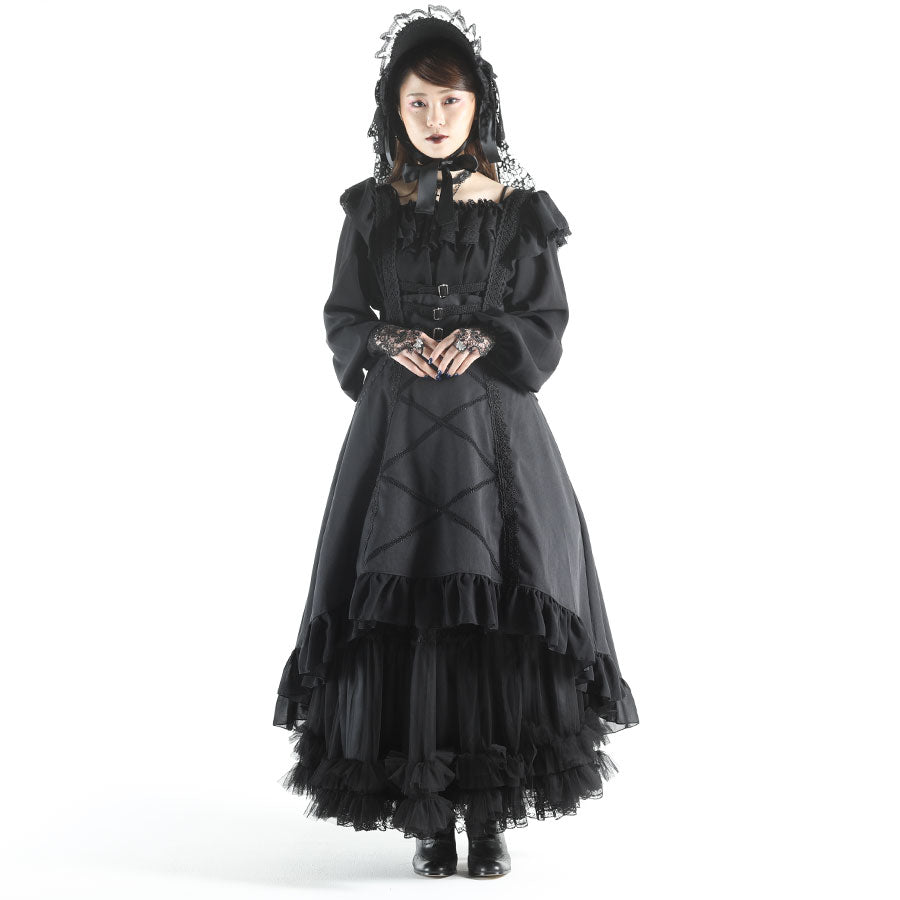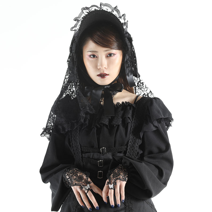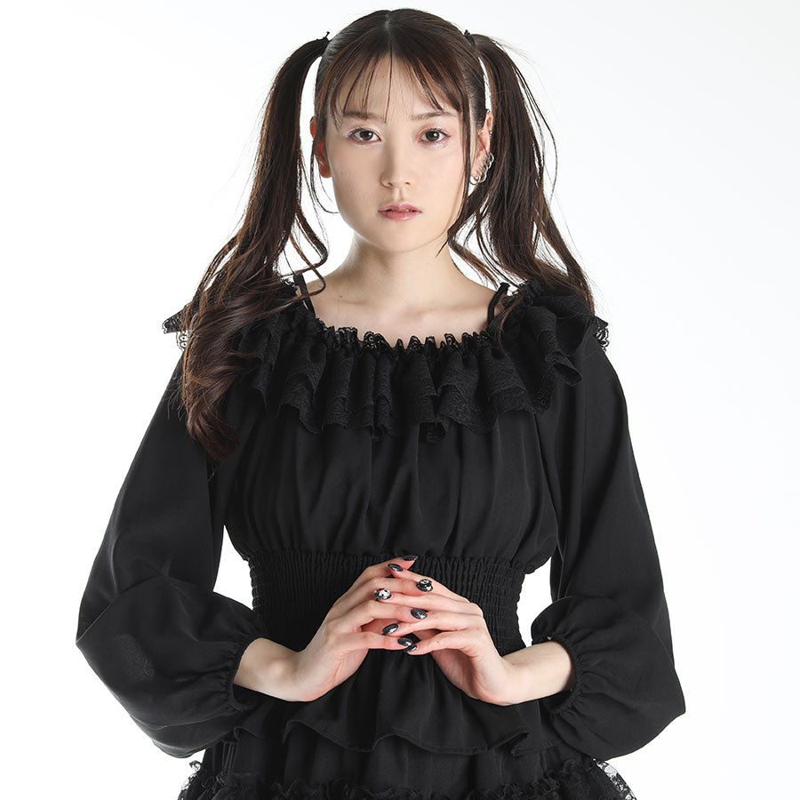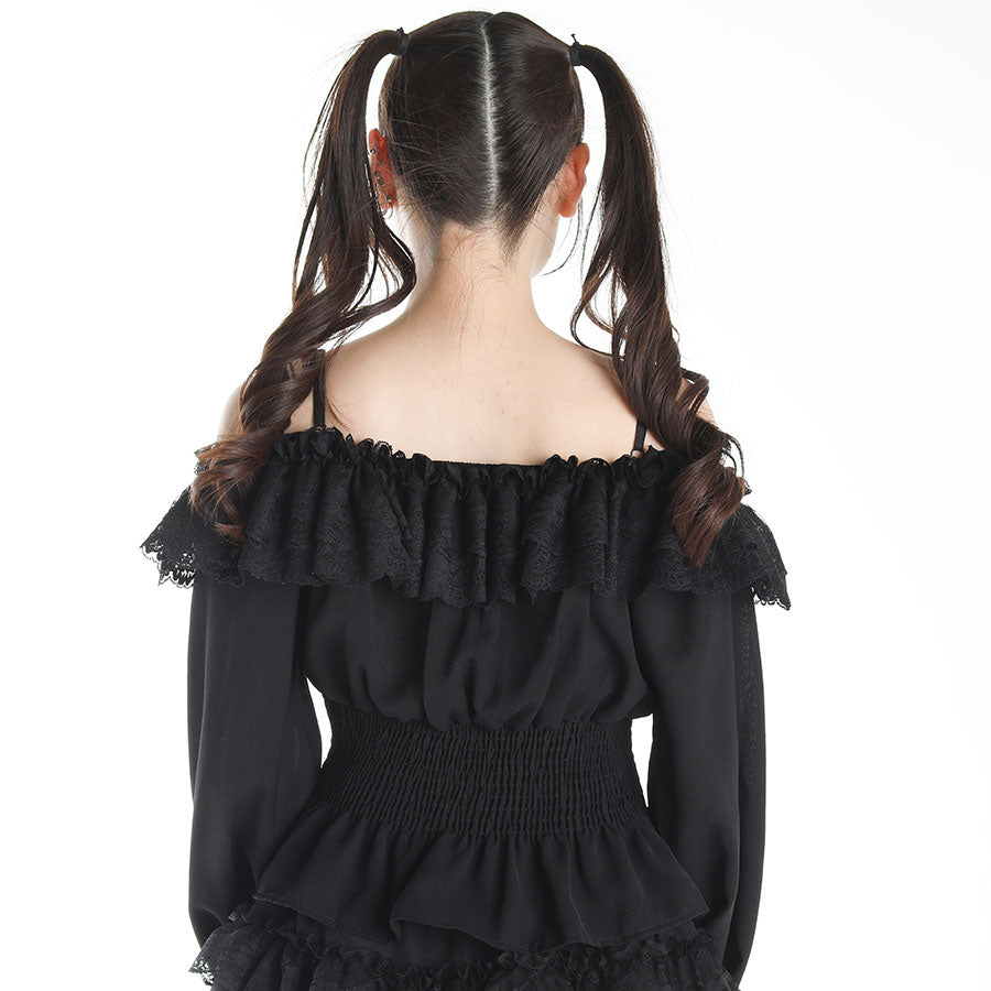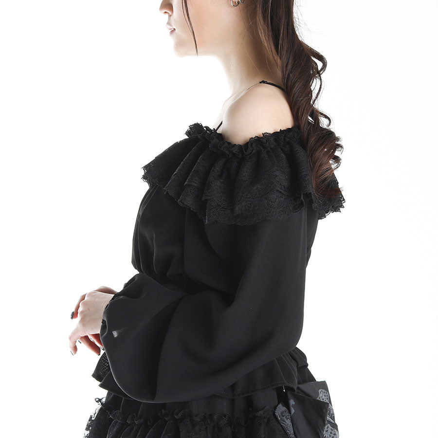 FRILL LACE OFF SHOULDER BLOUSE(BLACK)