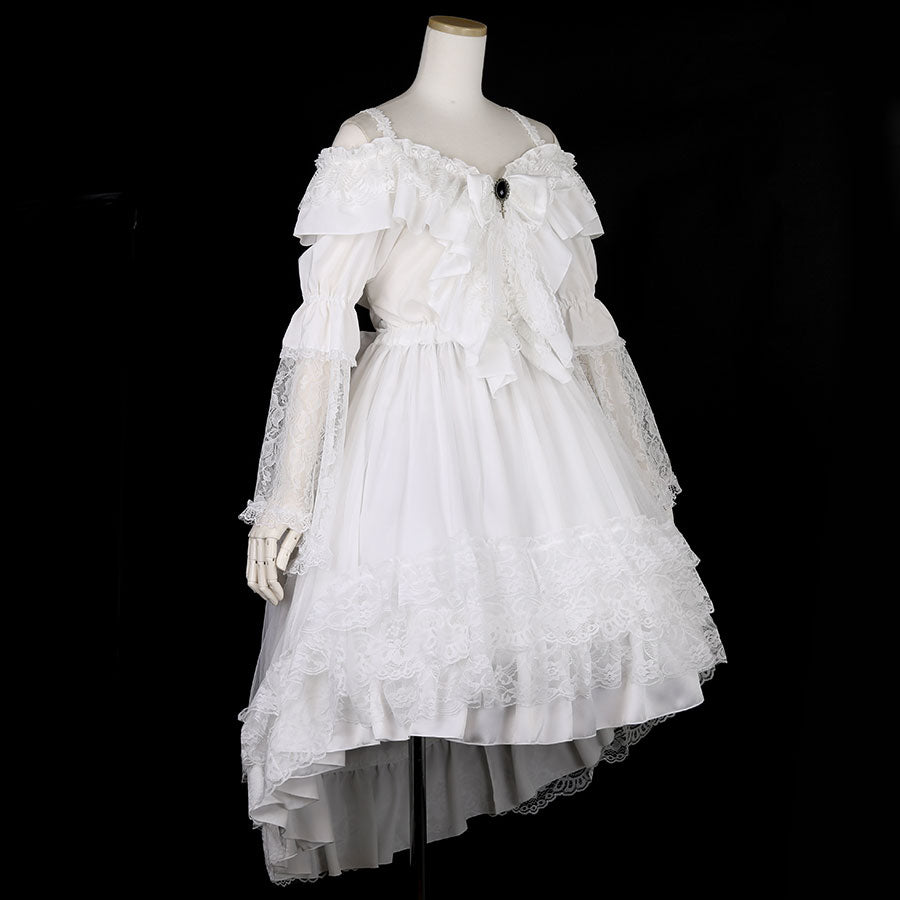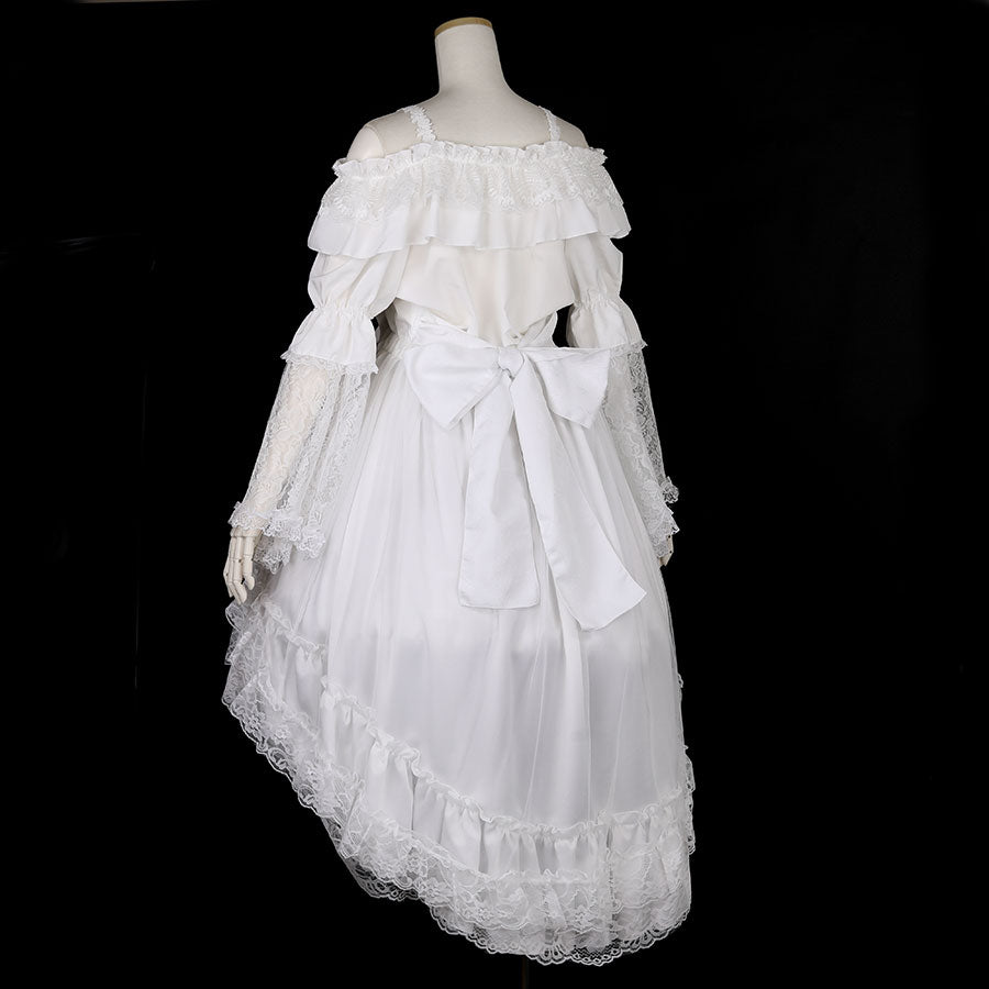 RIBBON BROOCH OFF SHOULDER DRESS(WHITE)
