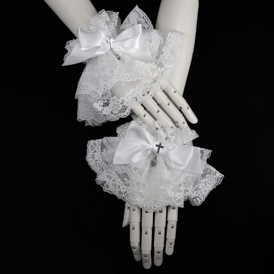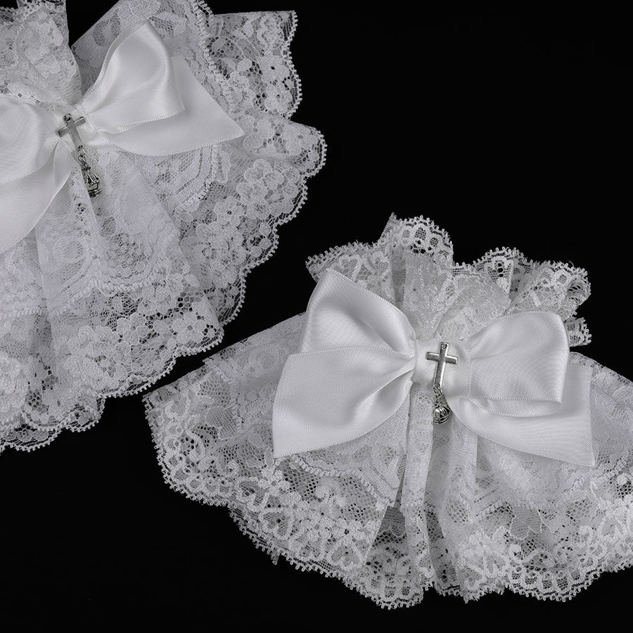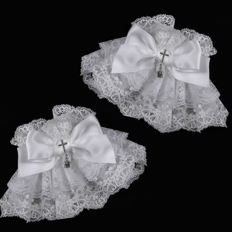 这些华丽的袖扣装饰有十字架和皇冠,并由大量蕾丝制成。它还可以用作袖塞,特别容易与衬衫搭配。只需将它添加到您的日常服装中即可增添一丝优雅。