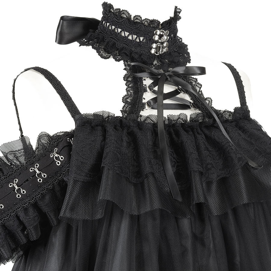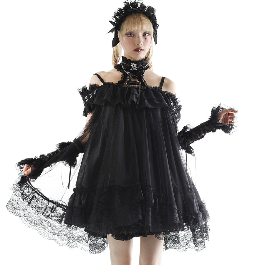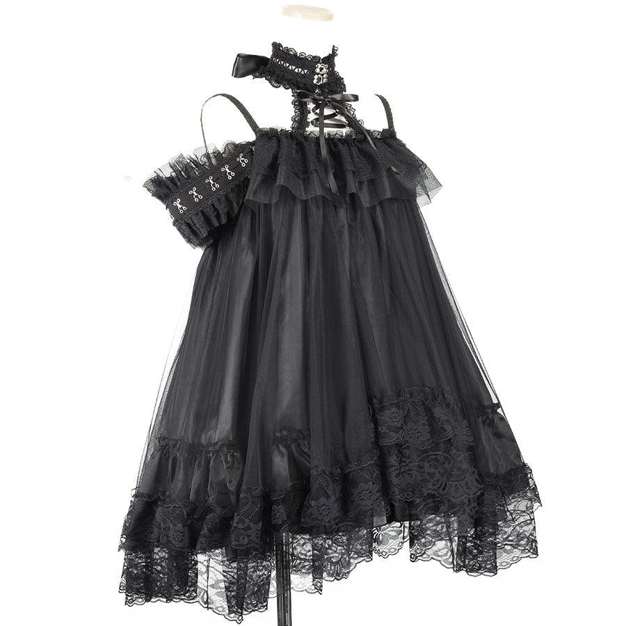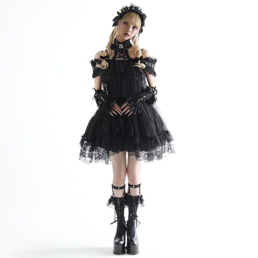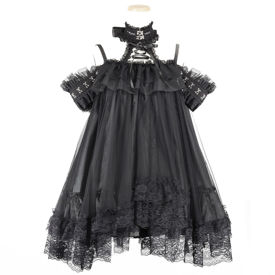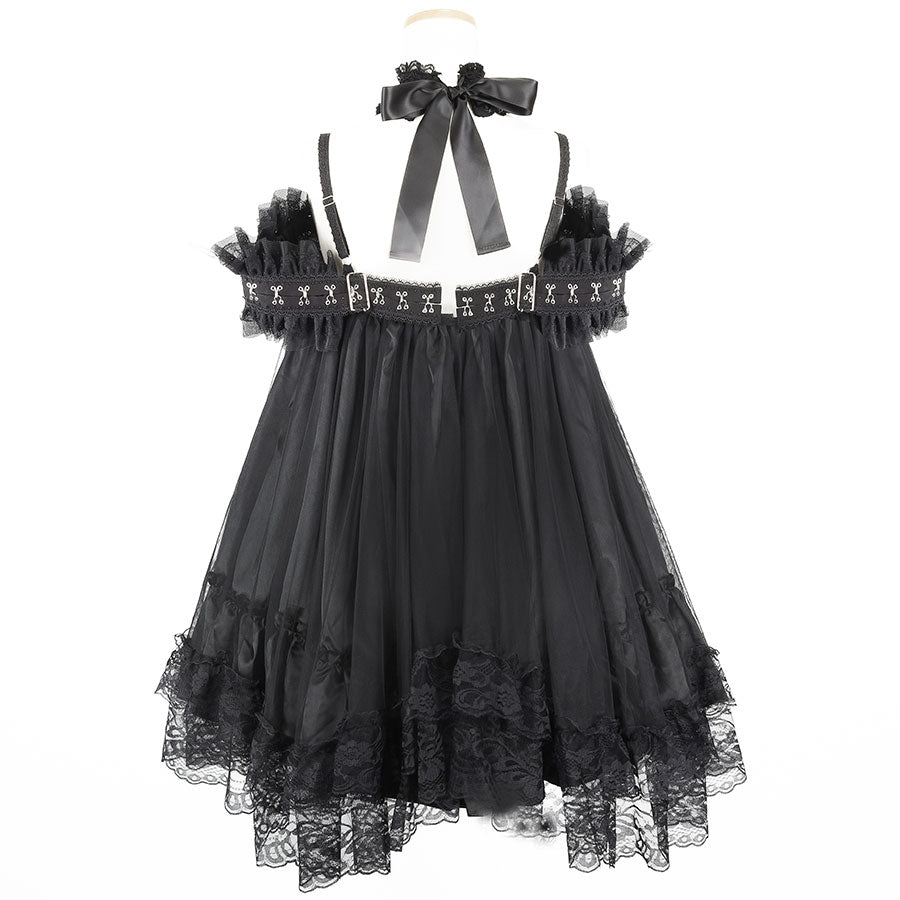 这款 A 字连衣裙外观略显硬朗,采用露肩设计,并带有钩子设计。