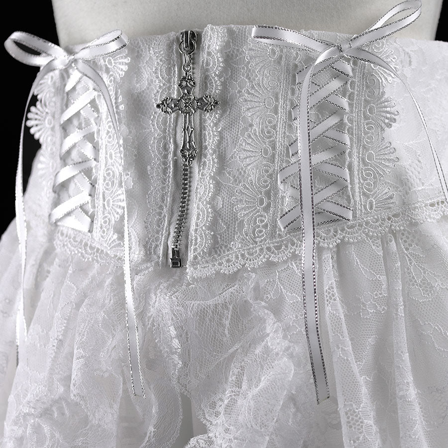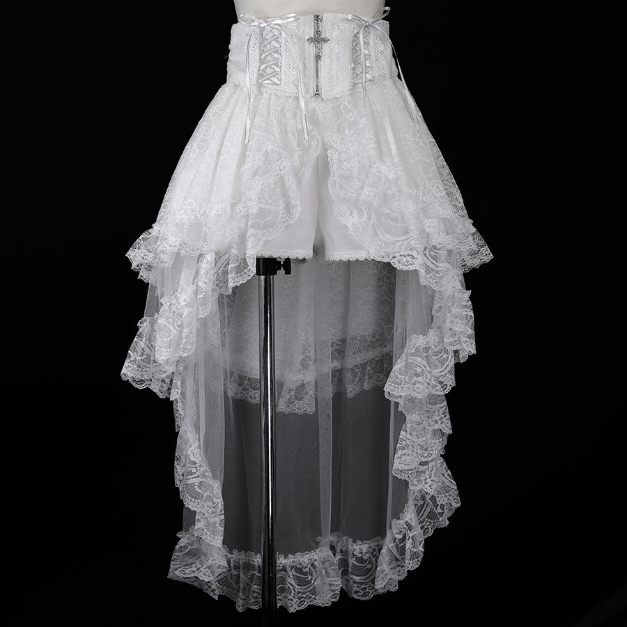 短裤上层叠着长尾薄纱蕾丝,如同裙子一般,营造出奢华的氛围。